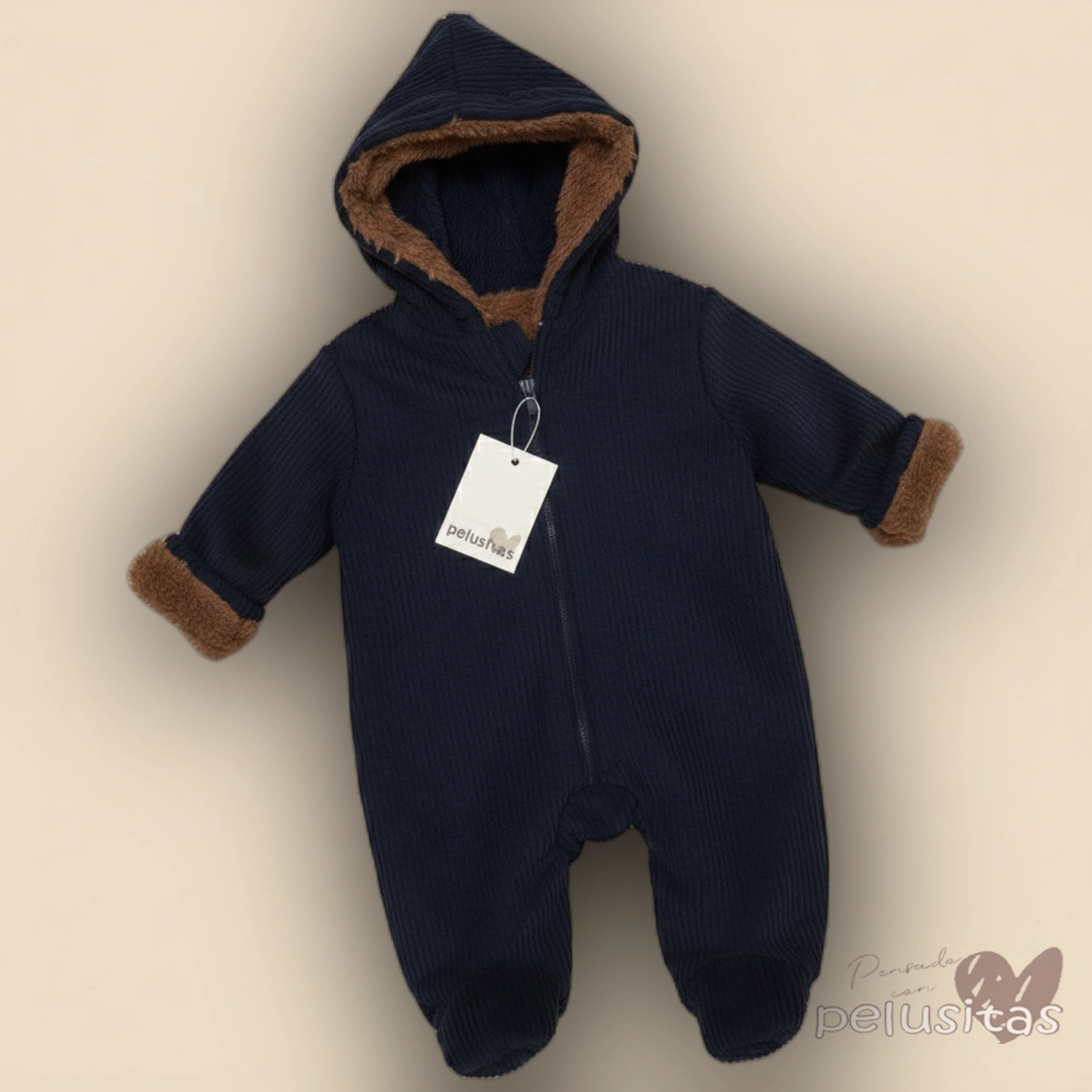 Enterito astronauta de tejido canalé con capucha y forro piel en todo el interior de la capucha y puños. Tiene cierre frontal completo y pies cerrados para máximo abrigo. Consultanos por WhatsApp por talles y colores disponibles.