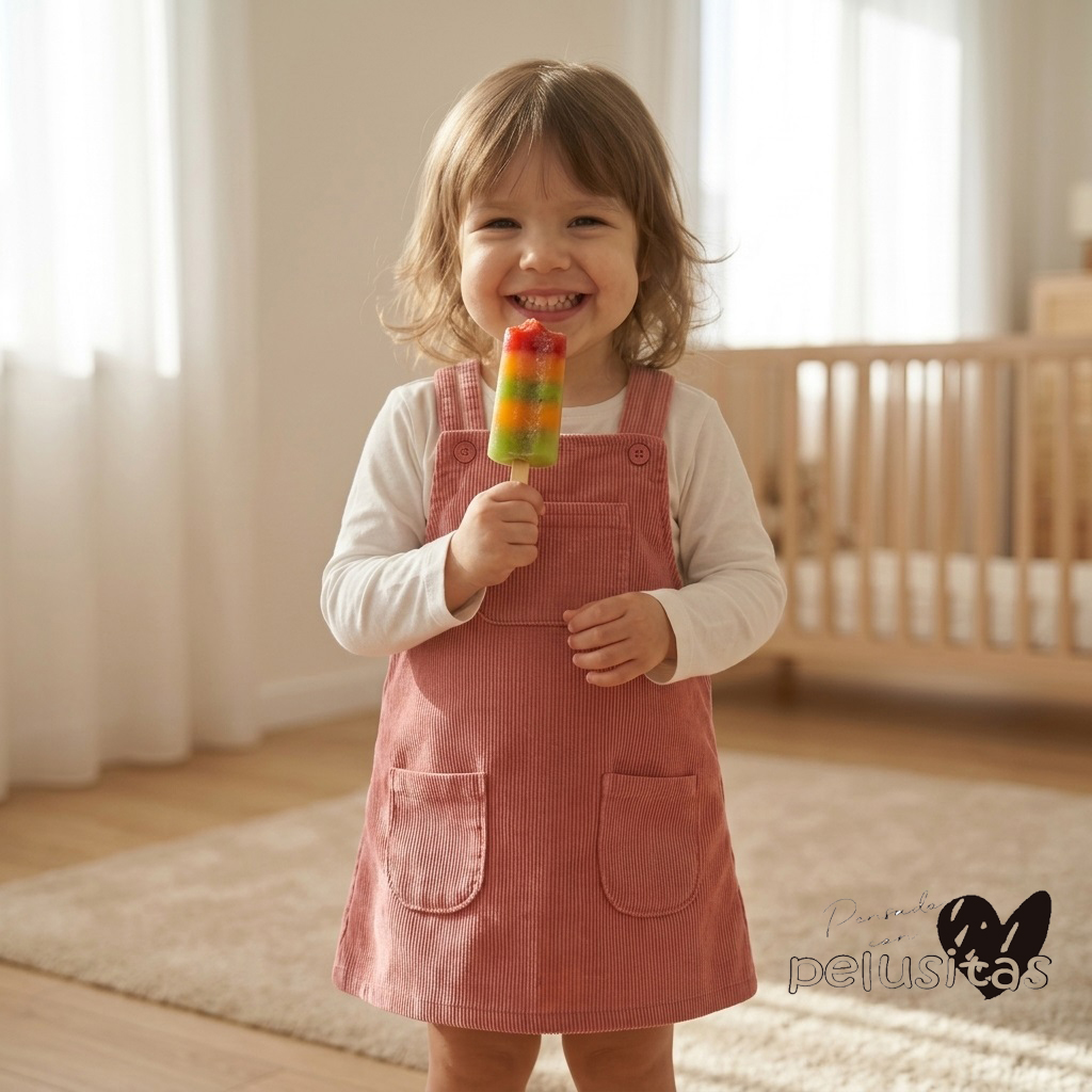 Este vestido de pana con pechera es ideal para que las nenas esten comodas y lindas todo el dia. Tiene bolsillos funcionales y se puede combinar con remera abajo. Consultanos por WhatsApp por talles y colores disponibles.